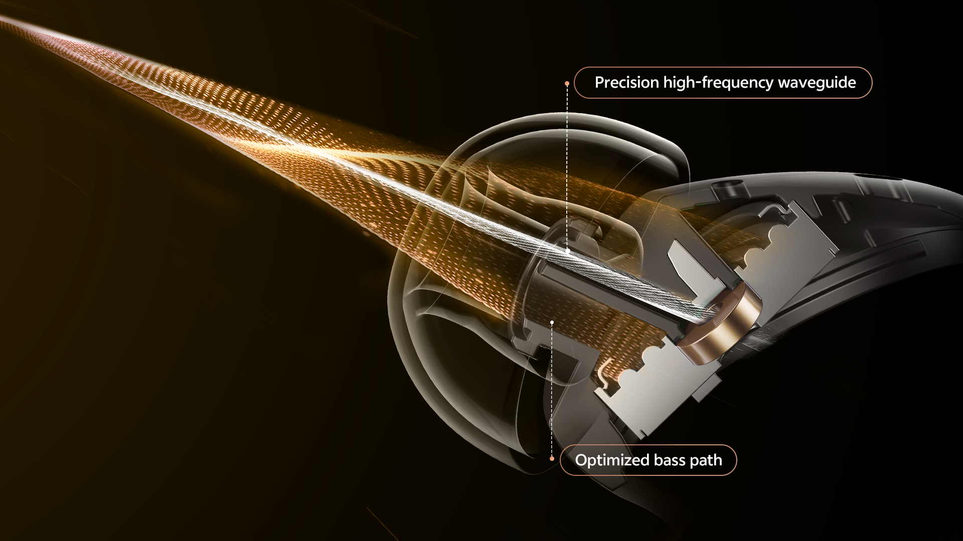 Our patented acoustic guide features a dedicated high-frequency conduit. This innovative design separates the sound paths for highs and lows, effectively eliminating resonance and mutual interference. The result is a sound that is pristine, with every nuance and detail of the original recording accurately preserved. Experience a richer, purer, and more vibrant audio landscape.