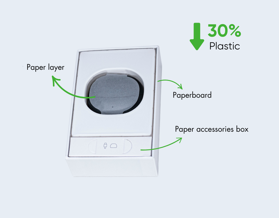 We are gradually reducing the plastic content of packaging materials by using alternatives such as paper, recycled fibers, and biodegradable plastics. For example, plastic film wraps are being replaced with paper boxes or wraps in our new products in 2024.
