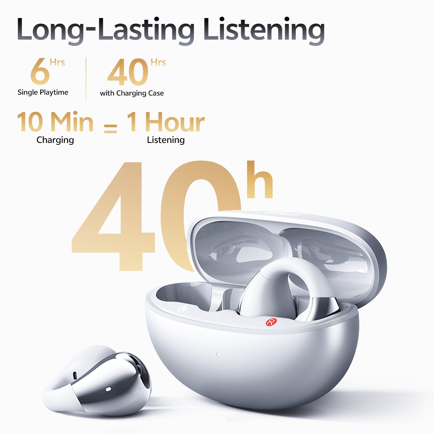 Battery life: 6h(earbuds),40h with charging case